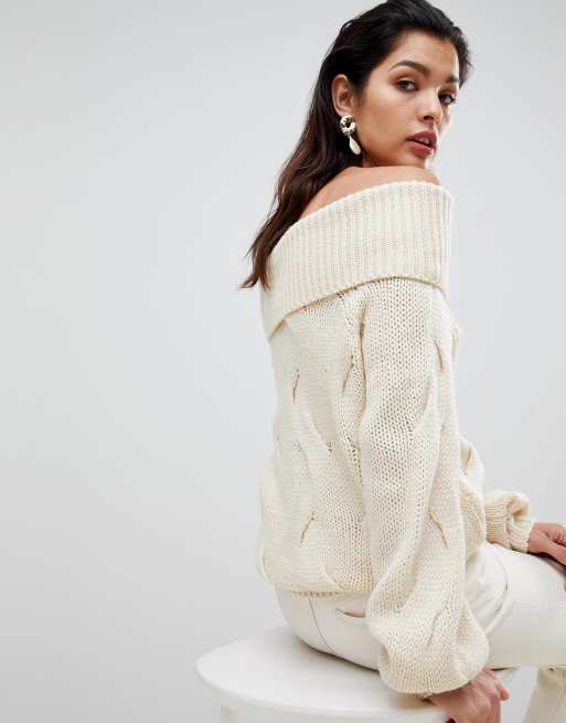 Vila Chunky Cable Knit Off Shoulder Jumper Very well made.