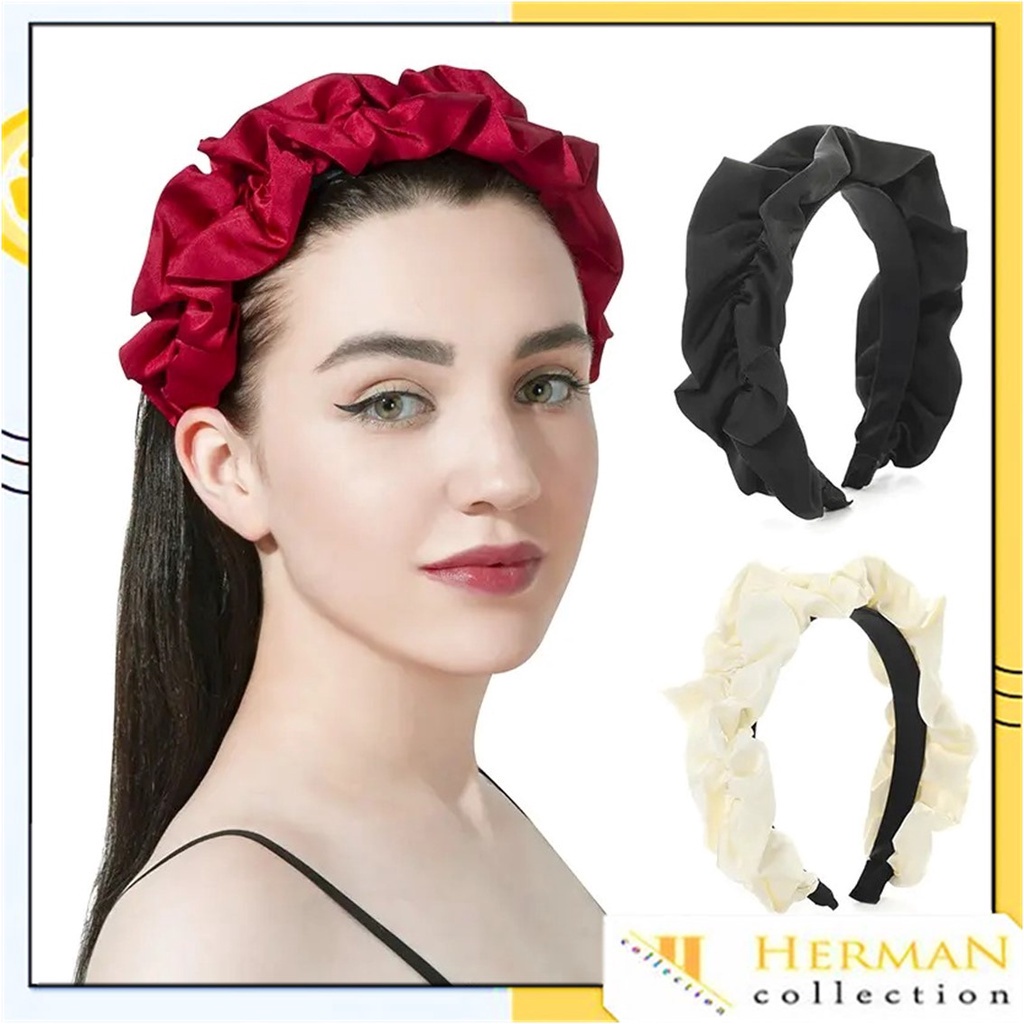 Jual HC Bando Kerut Lebar Satin Besar Korea Headband Ruffle Very well made.