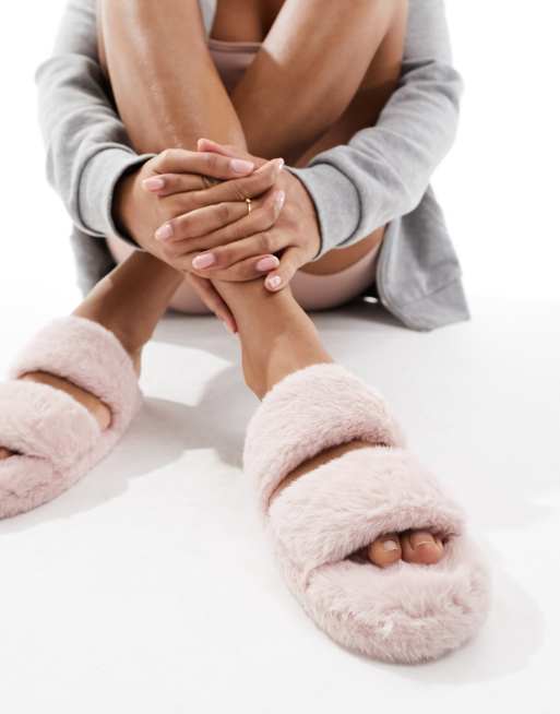 Lovestruck faux fur slider slippers in pink Very well made.