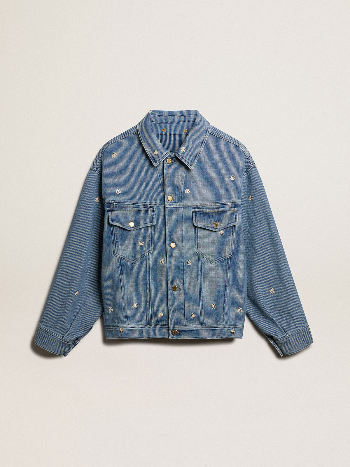 Women s denim jacket with floral embroidery Very well made.