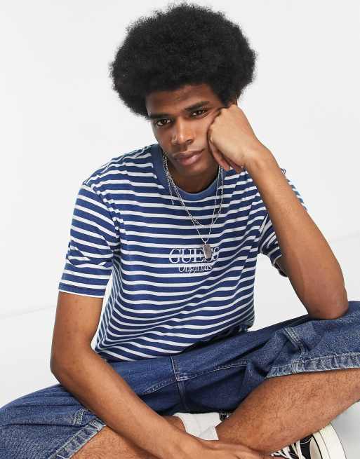Guess Originals t shirt with chest logo in blue stripe Very well made.