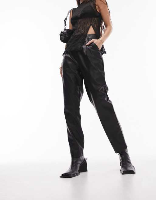 Topshop faux leather high waist pleated peg trouser in black Very well made.