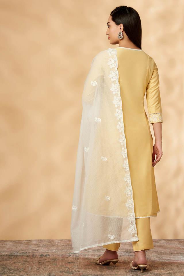 Chikankari A Line Kurta with Pant and Dupatta 3 Piece Set Very well made.