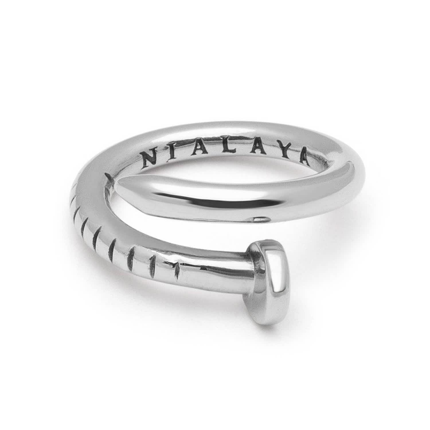Men s Nail Ring With Dorje Engraving Silver Finish Nialaya Very well made.