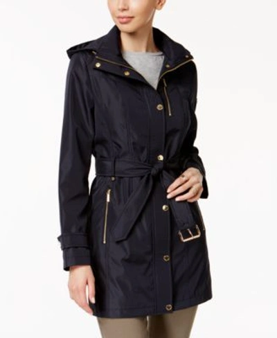 Michael Kors Michael Belted Hooded Raincoat In Navy ModeSens Very well made.