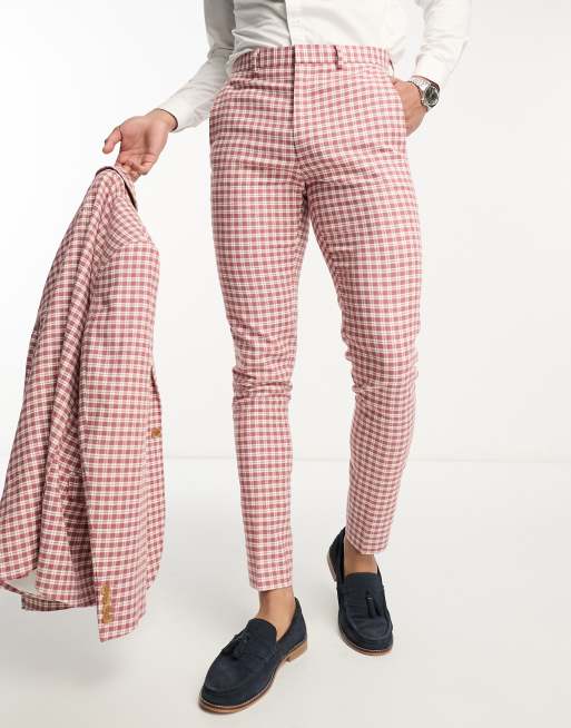 ASOS DESIGN skinny suit trouser in linen mix in gingham in pink ASOS Very well made.