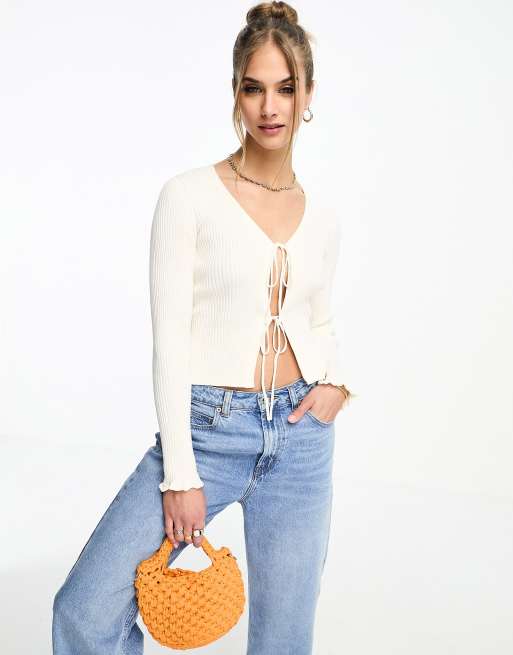 Other Stories tie front frill sleeve cardigan in off white Very well made.