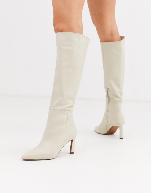 ASOS DESIGN Cyprus leather pull on knee high boots in off white Very well made.