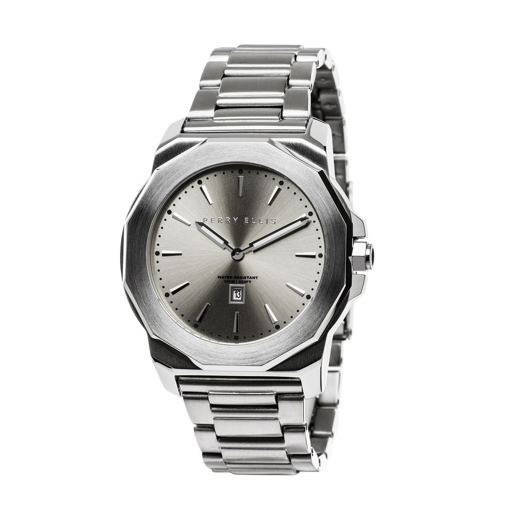 Perry Ellis Decagon Men 46mm Quartz Stainless Steel Watch 05003 Very well made.