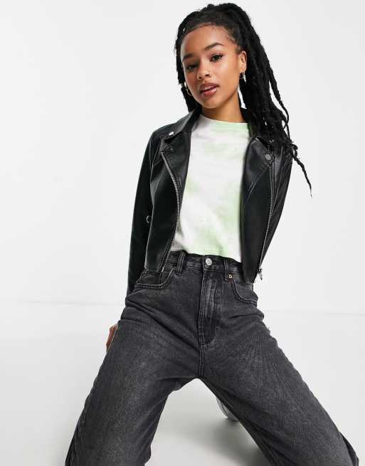 Miss Selfridge Petite faux leather biker jacket in black Very well made.