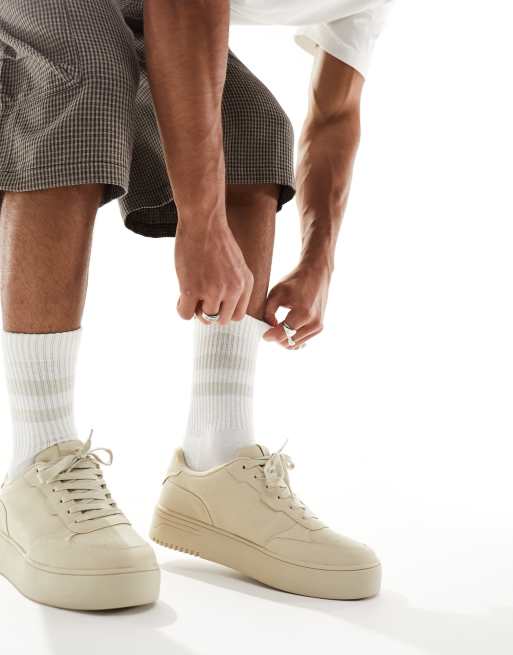 Pull Bear chunky ridged sole sneakers in beige Very well made.