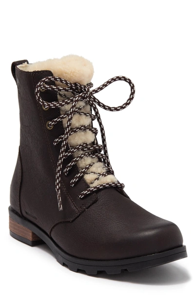 Sorel Emelie Genuine Shearling Short Lace up Boot In Blackened Very well made.