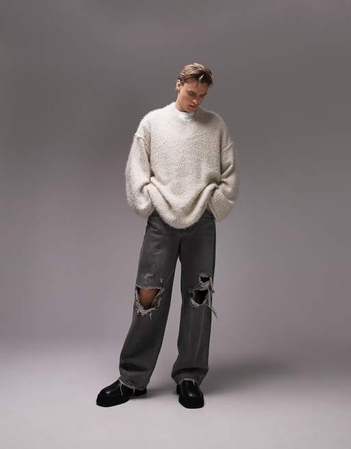 Topman heavy knitted oversized v neck jumper in ecru Very well made.
