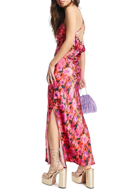 Topshop Bright Floral Midi Satin Slip Dress In Pink And Orange Very well made.