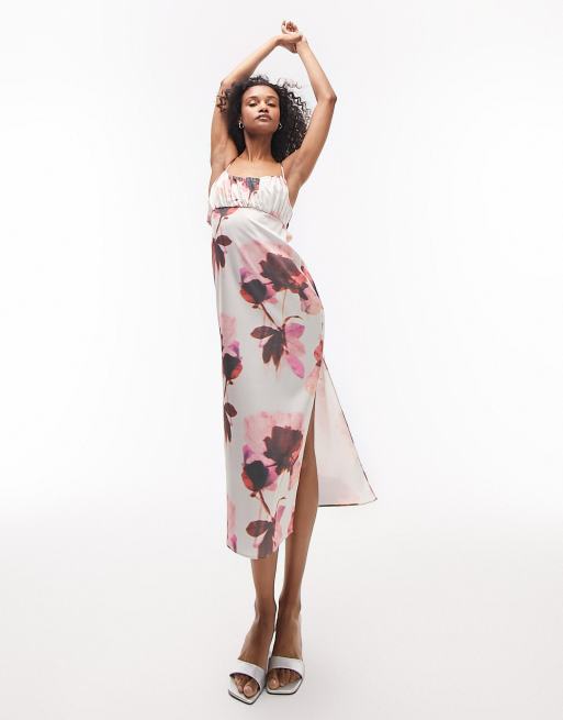 Topshop floral print satin cami midi dress in light pink ASOS Very well made.