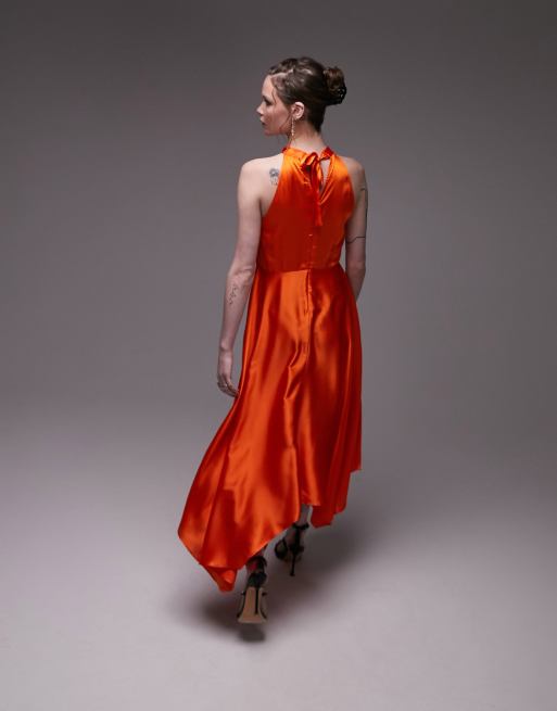 Topshop halter hanky hem printed maxi dress in orange Very well made.