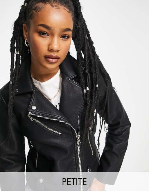 Topshop Petite cropped faux leather biker jacket in black ShopStyle Very well made.