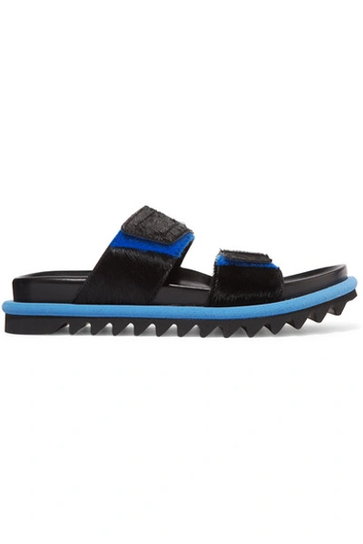 Dries Van Noten Calf Hair Double strap Slide Sandals In Black Very well made.