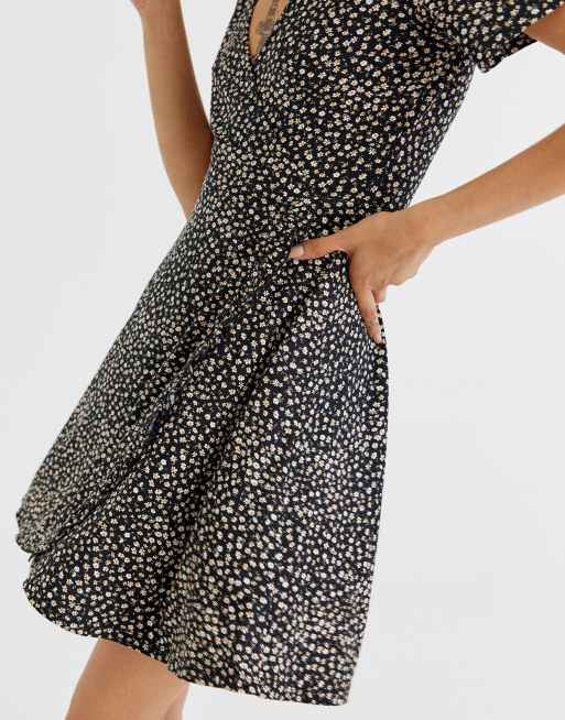 Pull Bear v neck floral mini dress in light black ASOS Very well made.