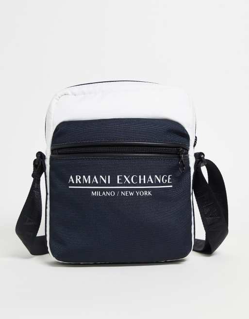 Armani Exchange logo crossbody bag in white navy ASOS Very well made.