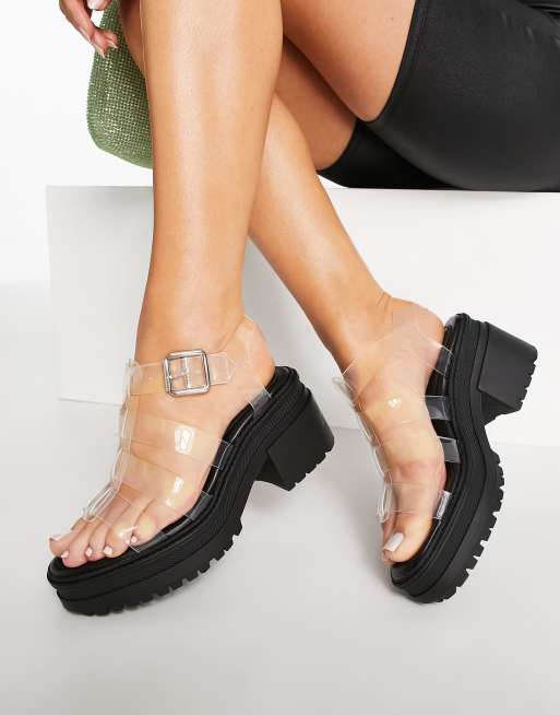 ASOS DESIGN Hugo chunky mid heeled sandals in clear ASOS Very well made.