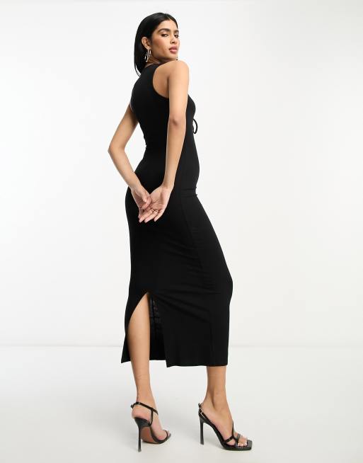 ASOS DESIGN deep plunge tie front midi dress in black ASOS Very well made.