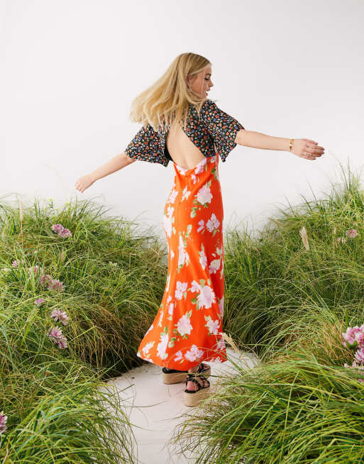 ASOS DESIGN cut out floral print maxi tea dress in red ASOS Very well made.