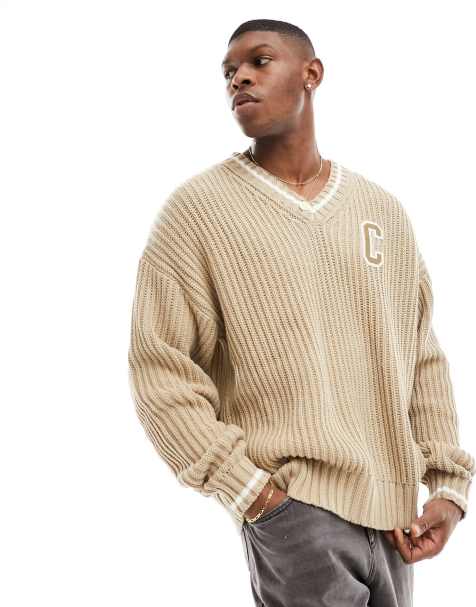 ASOS DESIGN oversized knitted v neck cricket jumper in charcoal Very well made.