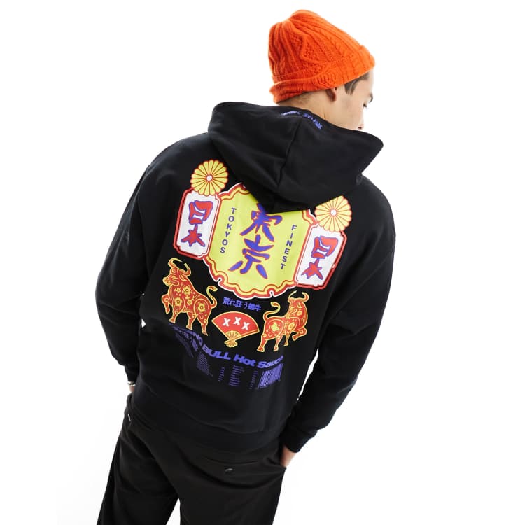 ASOS DESIGN oversized lightweight hoodie in beige with dragon back Very well made.