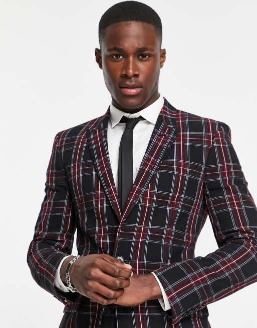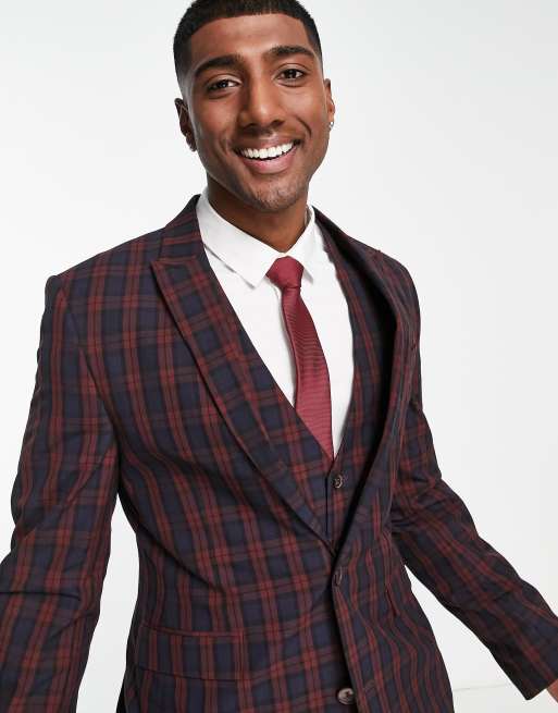 ASOS DESIGN wedding super skinny suit jacket in burgundy tartan ASOS Very well made.