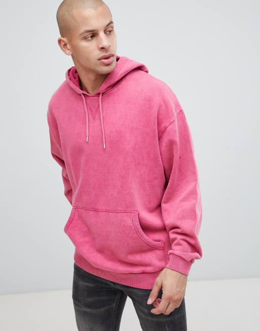 ASOS DESIGN Oversized Hoodie In Pink Acid Wash Very well made.