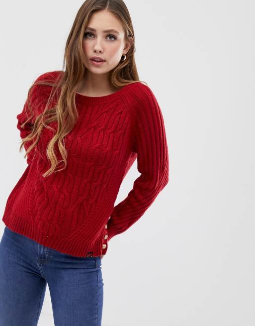 Buy Tokyo Talkies Red Round Neck Cable Knit Sweater for Women Very well made.