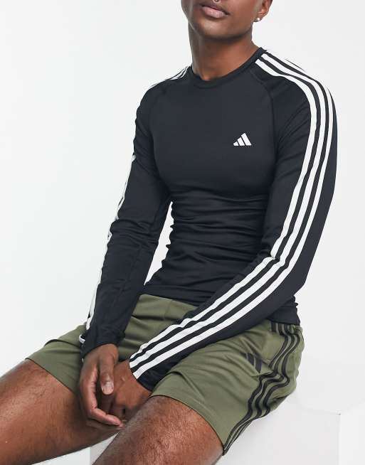 adidas Training Tech Fit 3 stripe long sleeve t shirt in black Very well made.