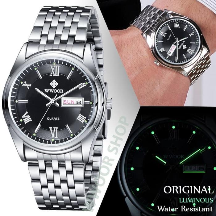 Jam Tangan Formal Pria Wwoor 8802 Hitam Kaca Hardlex Rantai Luminous Very well made.