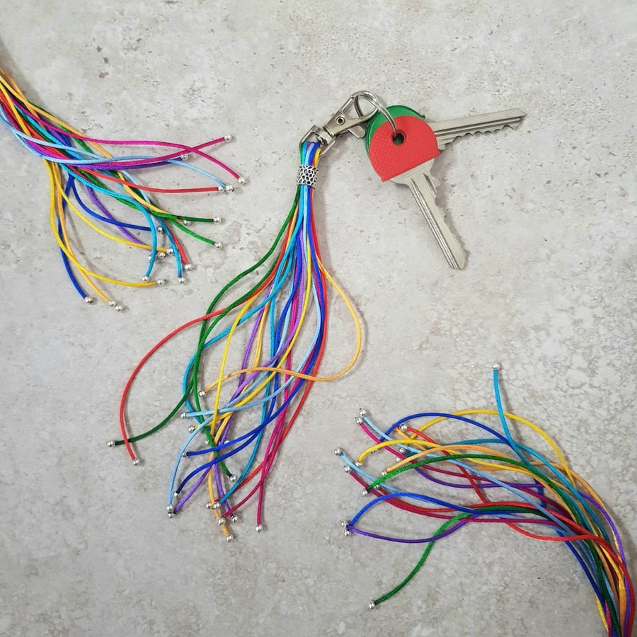 Beaded Rainbow Bag Charm Bohemian tassel keyring Boho purse clip Very well made.