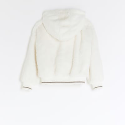 River Island Girls Zip Through Faux Fur Hoodie Cream very Very well made.