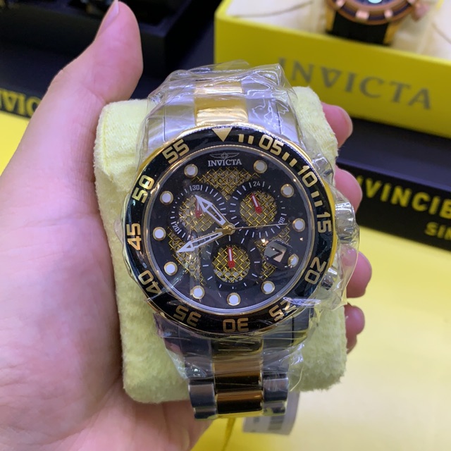 Invicta Pro Diver Chronograph Black and Gold Dial Men s Watch 19839 Very well made.