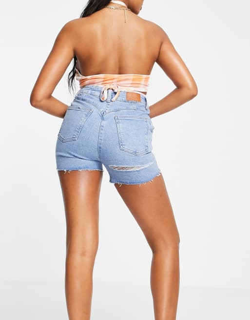 ASOS DESIGN Hourglass Pantaloncini skinny in denim blu con strappi sul sedere Very well made.