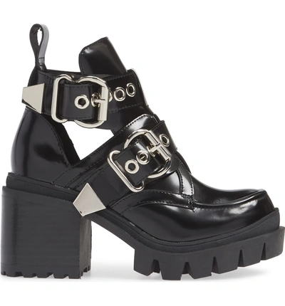Jeffrey Cambell Craven lo Black Leather Buckle Boot US 8 M CutOut Chunky Heels Very well made.