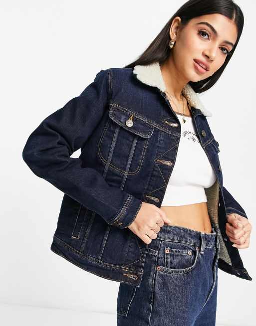 Lee Jeans sherpa denim jacket in dark wash blue Very well made.