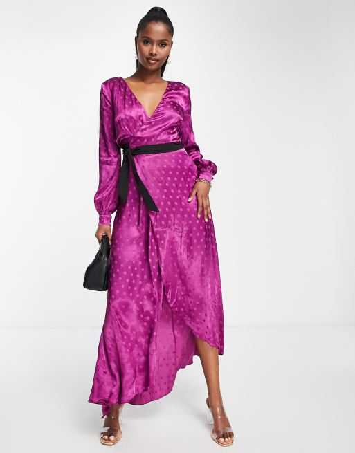 Little Mistress asymmetric maxi wrap dress in pink polka dot Very well made.