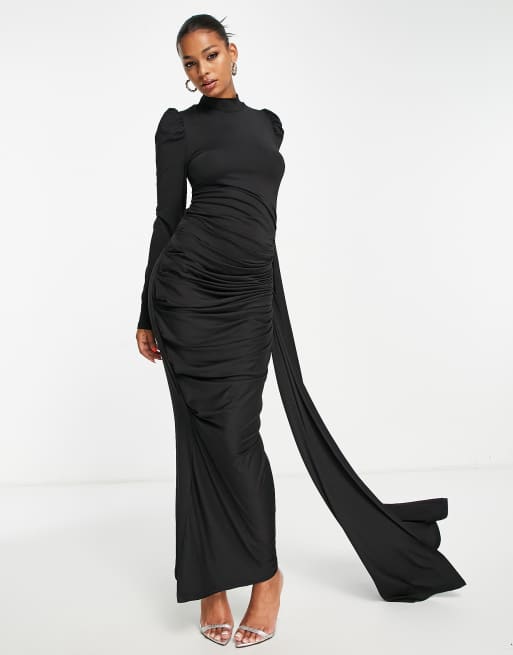 VL The Label modest draped long sleeve maxi dress in black Very well made.