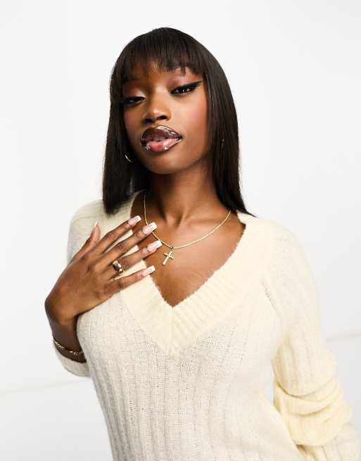Threadbare Bella v neck ribbed midi jumper dress in off white Very well made.