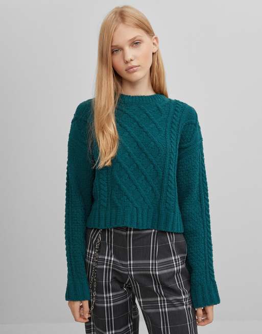 Sky blue Cable knit chenille sweater with stand up collar Buy Very well made.