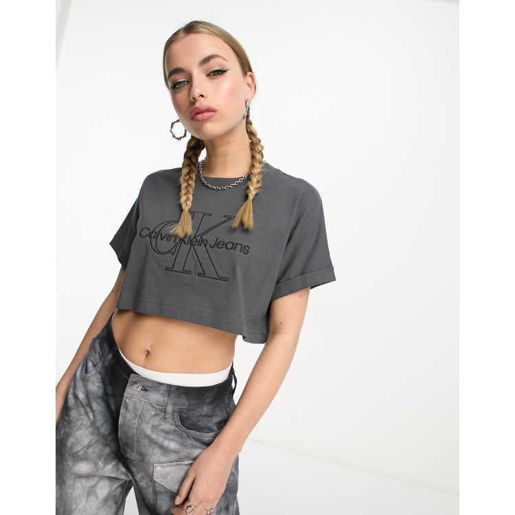 Calvin Klein Jeans monogram logo cropped t shirt in washed black Very well made.